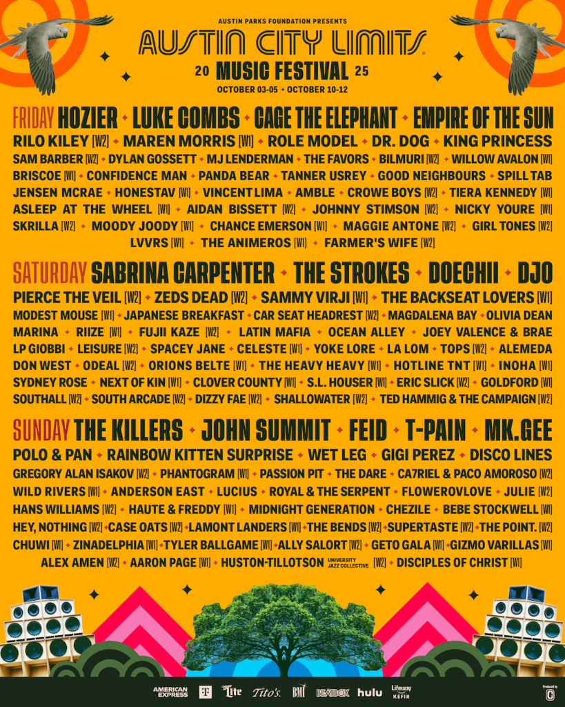 Austin City Limits Festival October 3-5 & 10-12, 2025 | Zilker Park, Austin, Texas